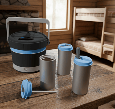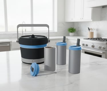 Extend your activity with an organized, multi-chambered solution. Don't get stuck with only one chamber! This drinking vessel can be the perfect companion for long road trips, truckers, campers, construction sites, the gym, in the office, attending sporting events, family outings, or any setting in the world. This innovative multi-chamber drinking vessel enables you to transport and guzzle more of your favorite beverages with ease.