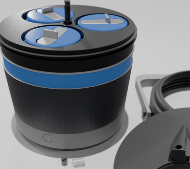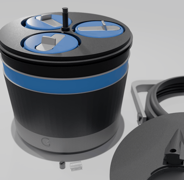 The chamber selector lid is equipped with an internal spring which creates downward force of the lid enabling a secure alignment lock on the chosen chamber.