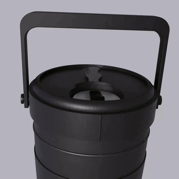 Each and every part of this modular drinking vessel is replaceable (when new replaceable parts of various colors are available in the future). Everything from the individual lids, carrying handle, the chambers, and the body itself.