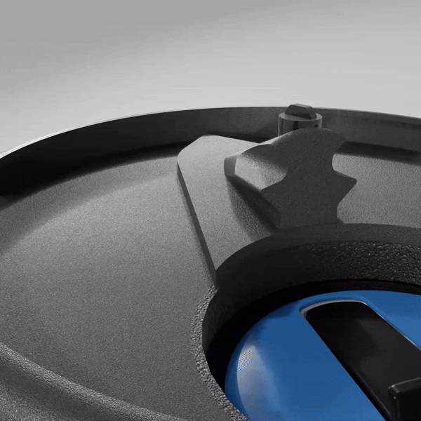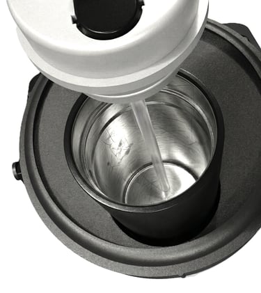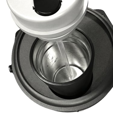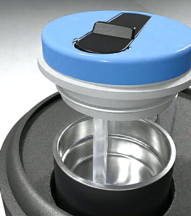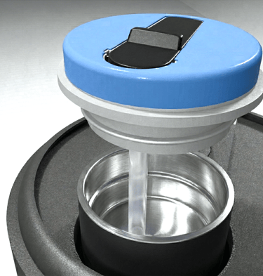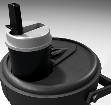 The chamber selector lid is equipped with an internal spring which creates downward force of the lid enabling a secure alignment lock on the chosen chamber.