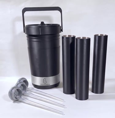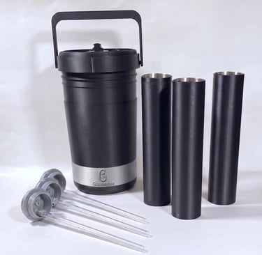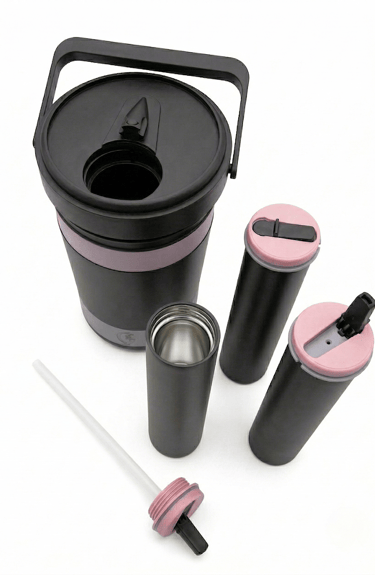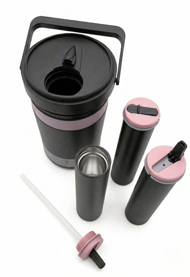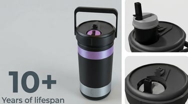 Every part of GuzzleMore is built with purpose. The BPA-free plastic body keeps weight low, the stainless-steel chambers preserve flavor and resist corrosion, and the high-tolerance spouts handle temperature swings without warping. Together, these materials deliver a dependable drink system designed for a lifespan of 10+ years.