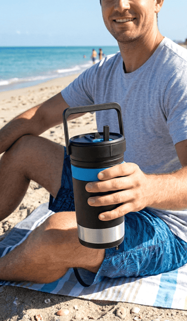 GuzzleMore holds three full drinks, yet the vessel itself weighs only about 0.75 lbs (0.34 kg) when empty. The BPA-free body keeps weight low, and the stainless-steel chambers balance strength with efficiency. You get triple capacity without feeling like you’re carrying extra gear.